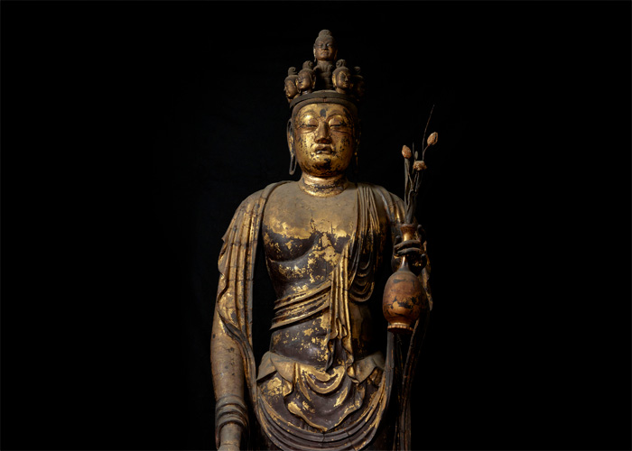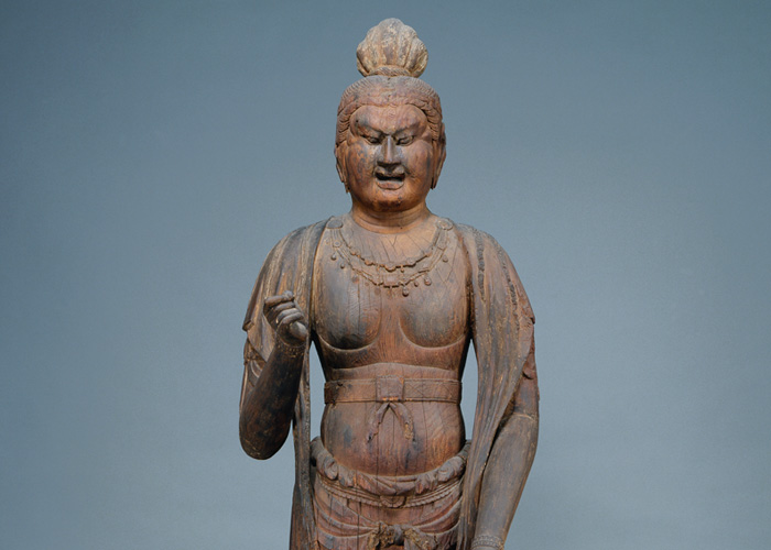 天平彫刻の名品として知られる聖林寺の国宝・十一面観音菩薩立像をはじめ、かつてこの仏像があった大神神社(おおみわじんじゃ)付属の大御輪寺(だいごりんじ)伝来の仏像や、大神神社の自然信仰を示す三輪山(みわやま)禁足地の出土品などを展示します。