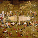 白河院(しらかわいん)の時代には、大構図で美しい彩色の力強い仏画が、きわめて多数製作されたと伝えられています。一方、鳥羽院(とばいん)の時代には繊細優美な表現が好まれたらしく、美麗な仏画や絵巻物が遺されています。また後白河院(ごしらかわいん)の時代は、平安から鎌倉に移る混沌(こんとん)とした時代を反映しつつ、多様な絵画が製作されました。