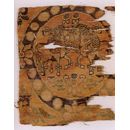 一方、アジアの地では、ササン朝ペルシアにおいて天馬は神聖な動物の一つに数えられていました。法隆寺に伝わる四騎獅子狩文錦(しきししかりもんきん)は、このペルシアに端を発する連珠( れんじゅ)に囲まれた天馬文や帝王狩猟文の要素を取り込み、中国の初唐ごろに作られたものです。シルクロードの交流を象徴するこの名品の公開に加え、中国・新疆ウイグル自治区で発見された類似の錦の断片も併せて展示します。