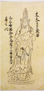 勧修寺〔かじゅうじ〕の寛信〔かんしん〕が編んだ図像集。本品は弟子の興然〔こうねん〕が師自筆の草稿本を写したものを、さらに明恵〔みょうえ〕の高弟・定真〔じょうしん〕が写したもの。そのなかで「東大寺印蔵像」と記されるのが、修二会〔しゅにえ〕後半の本尊となる絶対秘仏の小観音〔こがんのん〕である。