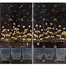 當麻曼荼羅を収める巨大な厨子[ずし](當麻寺本堂安置。総高501㎝)の扉で、鎌倉時代に取りつけられたもの。左右3面ずつの観音開き。総体に黒漆塗とし、表裏には蒔絵[まきえ]で散蓮華[ちりれんげ]や蓮池が描かれている。内面の下方には、造営に結縁[けちえん]した約2千人の名前が記されており、中には鎌倉幕府第4代将軍九条頼経[よりつね]や第3代執権北条泰時[やすとき]の名もみられる。