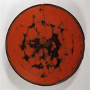 練行衆が食堂(じきどう)で食事をとる際に用いる丸盆です。はじめは机の下に据えられ、食後に食器類を載せて片付けるのに使用されます。ケヤキの一枚板を轆轤挽(ろくろび)きで成形したのち、全面に黒漆、表には朱漆が塗り重ねられており、摩滅した朱漆からのぞく黒漆が温雅な味わいを見せています。裏面の朱漆銘から永仁6年(1298)に制作されたとわかります。