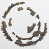 修二会(しゅにえ)の本尊である二月堂十一面観音(大観音(おおがんのん))の光背の頭光です。江戸時代の寛文7年(1667)に二月堂の火災で、本尊の光背は破損して断片が残るだけなってしまいました。本品は、それらを復元的に配置したもので、表面には華麗な文様が施されています。