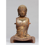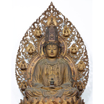 かつて伊豆山(いずさん)(現在の静岡・伊豆山神社)に伝来した阿弥陀如来像。建仁元年に京都で造立され、5年後に下常行堂(しもじょうぎょうどう)本尊に迎えられた。快慶と伊豆山の接点として、源延(げんえん)ら天台僧の存在が想定される。菩薩坐像は、これに随侍した四菩薩中の2軀。
