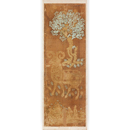 本品に表されるような巻角(まきづの)の羊や樹下に動物を配する構図は、ササン朝ペルシアの美術に由来するが、下端部に調絁銘(ちょうのあしぎぬめい)と思われる墨書(ぼくしょ)があり、天平勝宝3年(751)以降にわが国で製作されたことがわかる。