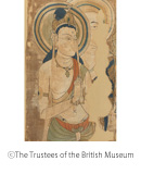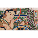 綴織當麻曼荼羅(3)の当初の姿を理解する一つの手段として、本展の開催にあわせ部分復元模造の製作を行い、製作は川島織物セルコンに依頼した。復元部分は比較的残りの良い向かって左側の菩薩(ぼさつ)の頭部とした。
