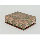 仏への献物を納めた箱。宝庫には同様の用途と考えられる箱が40合ほど伝わっているが、美しく装飾され、底部に脚(きゃく)を設けている品が多い。本品はヒノキ製で、外面と内面に彩絵を施している。外面は地に淡紅色を塗り、白・黄・橙・赤・緑・紫・黒などを用いて草花文を描いている。とりわけ蓋の上面は文様構成が豊かで、五弁のやや大きな花を中心に、四辺の中央と四隅に五弁花をつけた草花文を整然と配置している。脚は暗い緑系と赤褐色で彩られ、箱本体と印象を変えている。30年ほど前に行われた科学調査によって、本品の淡緑色の顔料より塩化物系鉛化合物(えんかぶつけいなまりかごうぶつ)が検出された。この物質はわが国で用いられた白色顔料に含まれることが指摘されており、これより本品は国産品である可能性が高いことがわかる。