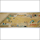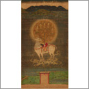 春日大社第一殿の祭神、武甕槌命(たけみかづちのみこと)が、白鹿に乗って常陸国(ひたちのくに)を発ち、奈良・春日の地に至ったという伝説を描いています。制作時期と絵師が明らかな貴重な作です。
