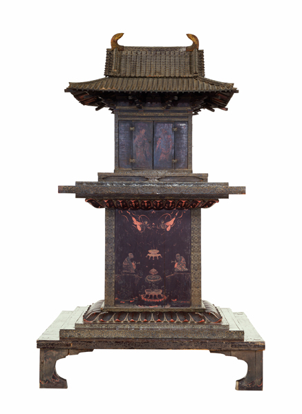 宮殿形の厨子で、要所に施された玉虫の翅(はね)の装飾が名の由来。台座には釈迦の前世譚(ぜんせたん)や須弥山(しゅみせん)などの図が描かれる。飛鳥時代の仏教文化の水準を示す名品。