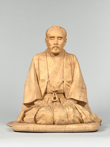 おそらく現存する唯一の藤田傳三郎の肖像彫刻。広葉樹の一材から彫り出し内刳(うちぐり)はなく、素地(きじ)仕上げとする。顔の皺(しわ)まで克明に表現され、傳三郎の肖像写真と比べても風格がある。伝来・作者は不詳。