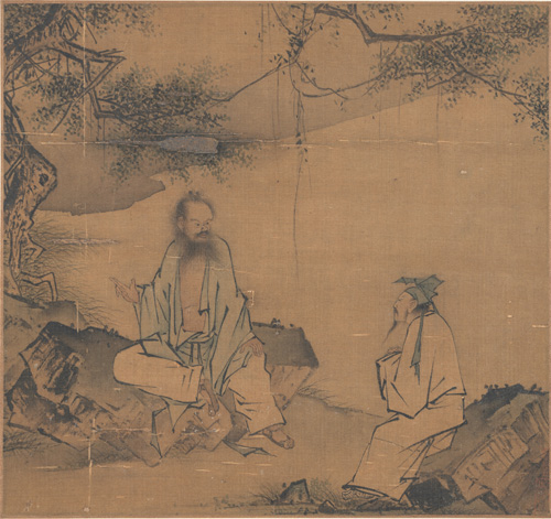 鍾離権(しょうりけん)が呂洞賓(りょどうひん)に仙術を伝える姿が描かれる。2人はいずれも、八仙に数えられる代表的な中国の仙人である。南宋時代末の宮廷画家の手になるとされ、着色・淡彩と水墨を併用し、細かい描写で2人の性格まで描き分ける。貴重な宋~元代絵画の新出作例として、大いに注目される。