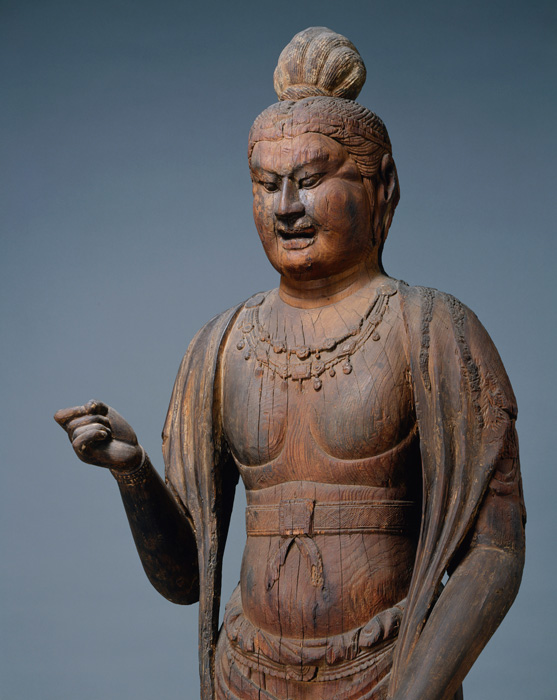 大安寺本堂の秘仏本尊。頭部は後補であるが、均整のとれた体部の造形は奈良時代彫像の特徴を示す。着衣や装身具が精緻に彫り出されており、中国・唐の仏像の影響が強い。