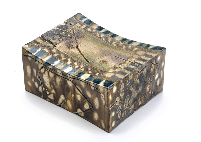 大安寺の造営に関わった僧・道慈(どうじ)が唐から多数持ち帰ったとされる唐三彩(とうさんさい)。宝相華文(ほうそうげもん)などを型で押した後、三色の釉薬(ゆうやく)で色を付けている。唐三彩を模倣した国産の陶枕も作られた。
