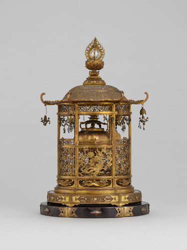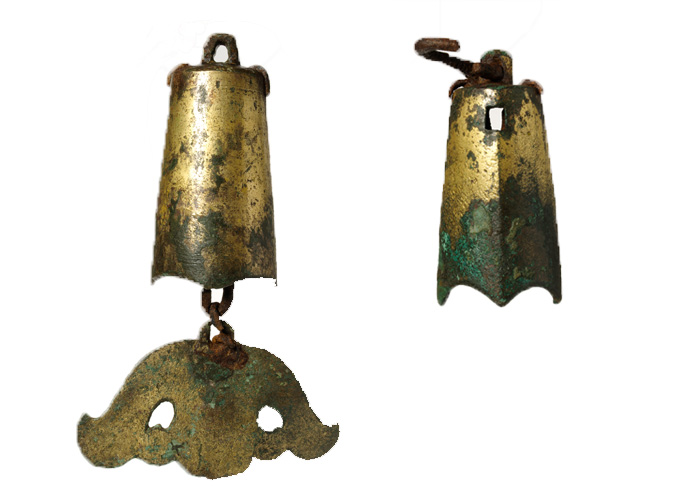 かつて、大安寺の塔は東大寺の塔に次ぐ規模の七重の双塔(そうとう)であった。本品は西塔の相輪に下げられていた風鐸。大型で鍍金(ときん)が施され、塔の威容を物語る。