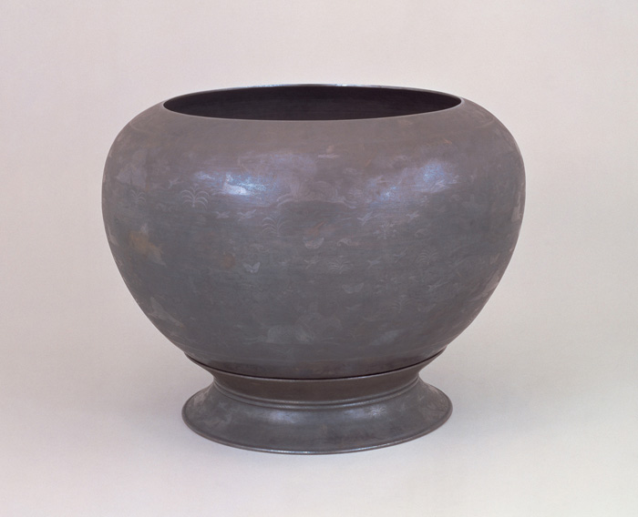 聖武天皇と光明皇后の娘・(しょう)(とく)(てん)(のう)にまつわる(ぎん)()(大型の銀製の壺)も見逃せません。この品は、天平神護3年(767)2月4日、称徳天皇が東大寺に行幸した際の大仏への献納品と考えられ、その破格の大きさもさることながら、表面に施された騎馬人物や鳥獣の細かな線刻文様が目をひく逸品です。