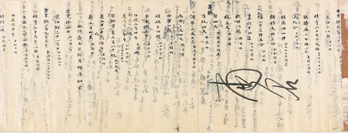 興福寺西金堂は、光明皇后が母の県犬養橘三千代の冥福を祈って建立した仏堂。本品は、その造営を担当した役所が天平6年(734)5月1日にまとめた、製作物に関する報告書である。著名な阿修羅像も含まれていたであろう安置仏について記した部分は現存しないが、西金堂を飾る荘厳具について記す現存部分からは、宝蓋や幡に使用された色とりどりのガラス玉の材料などがわかる。正倉院宝物の製作技法の手がかりにもなる重要史料である。