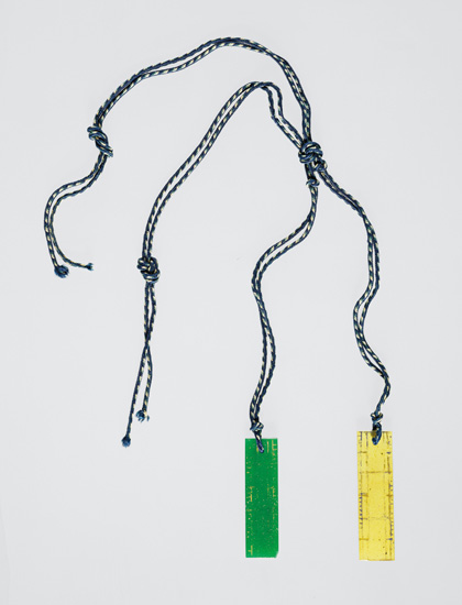 ガラス製のものさし形飾り)  各1枚(組紐結束)
