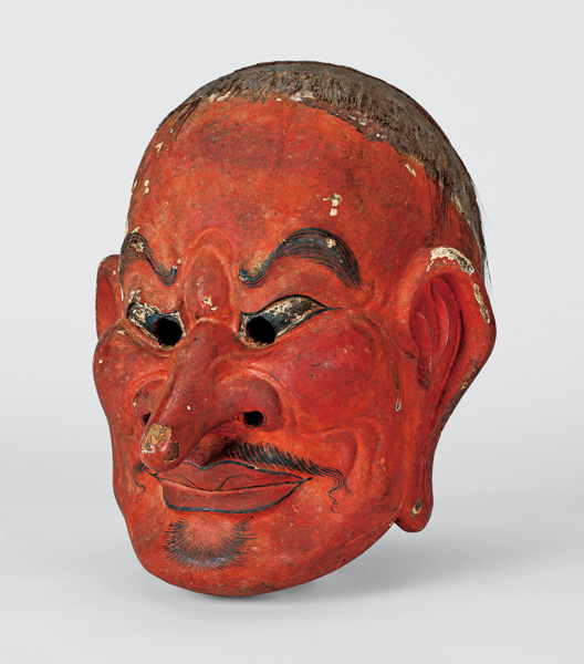 伎楽に用いる仮面。伎楽は飛鳥時代に大陸から伝わった仮面劇で、法会などに際して盛んに行われた。平安時代以降、次第に衰退したため内容の詳細には不明な点が多いが、仮面は14種で23面を一組としていたようである。8人からなる酔胡従は酔胡王に従って楽舞の終盤に登場し、泥酔した演技で観衆を楽しませたと推測される。本品はキリの一材製で、表面に彩色を施し、頭髪には馬の鬣を用いたと推定される。面裏に墨書があり、捨目師という人物の作とわかる。