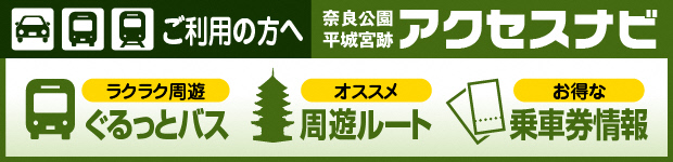 ぐるっとバス(奈良公園ルート、大宮通りルート)「大仏殿前駐車場」下車、徒歩5分